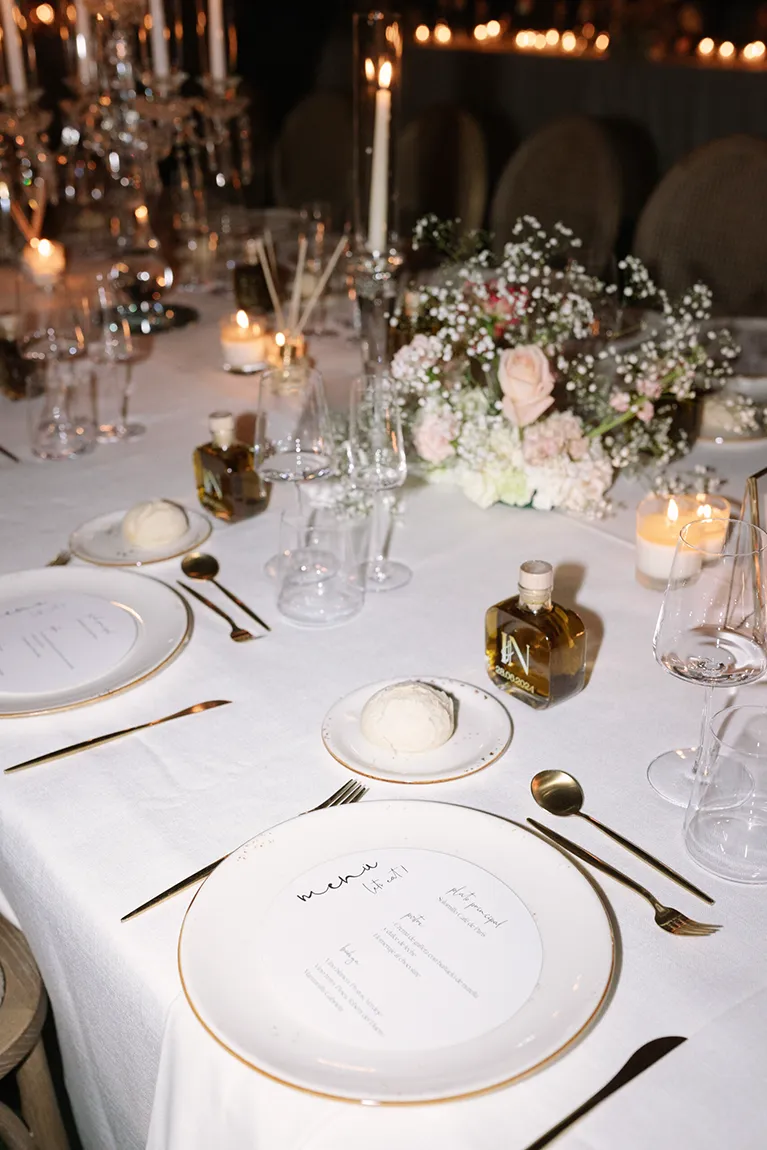 At Antié, we collaborate with local artisans and artists, with the most acclaimed chefs, and with the best companies in Spain to design your event. The perfect menu is not only tasted — it is experienced. Flowers don’t just decorate — they perfume the moment and become part of the memory. Lighting doesn’t just highlight the space — it transforms it into a living image that will remain in the guests’ minds forever. True luxury is when everything makes sense and is wrapped in harmony.
